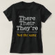 Ils sont là. Souvent utilisé de manière interchangeable, et même pas près de signifier les mêmes choses. Je sais qu'ils ont le même son, mais ils ne sont PAS le même mot. Les gens qui mélangent constamment ces trucs me donnent du mal, et ils font tout ce qu'ils écrivent suspect, aussi bien écrit que précis. Soooooo, prends une seconde et fais-le bien. Ils sont là. Pas pareil. En noir, blanc et or, ce design fait savoir aux gens que vous n'avez aucune tolérance pour leur style d'écriture merdique et pour tout