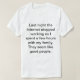 Dernière nuit tee - shirt, Internet a cessé de fonctionner, alors j'ai passé quelques heures avec ma famille. Ils ont l'air de bonnes personnes.