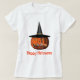 Un citrouille Jack-o'-lantern à l'air moyen portant un T-shirt Halloween casquette de sorcière. Vous pouvez modifier ou supprimer le texte. Disponible en tailles, styles et couleurs assortis pour les hommes, les femmes et les enfants. Visitez ma galerie pour voir d'autres cartes et cadeaux d'Halloween. Merci de vous être arrêté par Smilin' Eyes Treasures!