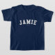 Jamie ! Votre nom est-il Jamie ? Ou avez-vous un mari, un ami, un membre de la famille masculin ou un mâle Jamie appelé par ami ? Si oui, cette chemise de "bannière" est exactement le cadeau que vous recherchez ! Les caractéristiques de conception "Jamie" dans le lettrage blanc arqué à travers le coffre dans la police classique d'université.