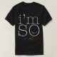 Affichez votre différence avec plaisir sur votre t-shirt noir masculin avec ce design unique "Je suis si différent" dans les couleurs blanc et arc-en-ciel (rouge, orange, jaune, vert, bleu, violet). Le "O" dans "so" comporte une tête avec un symbole souriant à l'intérieur, en dégradé arc-en-ciel. Le mot "différent" est inversé pour illustrer cette différence. Ce design est LGBTQ+ amical.