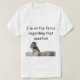 Oiseau noir et blanc (Phoebe Noir) assis au-dessus d'une barrière en bois rustique. Arrière - plan "ciel" bleu. Le texte dit "Je suis sur la barrière à propos de cette question"