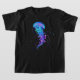 Grande méduse bleue, artistiquement dessinée, brillante, brillante, avec de longues tentacules sur arrière - plan noir avec bioluminescence violette. Méduse brillante.