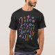 Ce t-shirt noir comporte les mots "Jésus" et "guérison" sont écrits dans un script plus grand et coloré avec des lettres rose, orange et bleue, avec "tout" en dessous en orange. Des fleurs colorées et une croix décoratives sont placées autour du texte. Cette conception offre un message religieux de guérison.