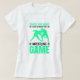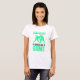 Un tee-shirt de femme humoristique présentant des excuses ludiques pour des actions lors d’un match de lutte. L'imprimé vert se démarque contre la chemise blanche, ce qui en fait une pièce amusante et attrayante