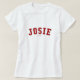 Josie ! Votre nom est-il Josie ? Ou avez-vous une épouse, une amie, un membre de la famille féminin ou un ami féminin appelés Josie ? Si oui, cette chemise de "bannière" est exactement le cadeau que vous recherchez ! Les caractéristiques de conception "Josie" dans le lettrage rouge arqué à travers le coffre dans la police classique d'université.