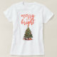 Un tee graphique festif de Noël pour femmes avec un sapin de Noël et une typographie moderne en minuscules avec "Joyeux et brillant". Le texte rouge et le style de t-shirt blanc peuvent tous deux être modifiés.