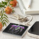 The centerpiece of this design is a highly detailed, multi-faceted chrome spider. The arachnid is rendered with sharp, geometric surfaces that reflect an iridescent palette of purple, green, and silver, giving it a polished 3D appearance. The spider sits centered over a delicate, grey geometric web pattern.