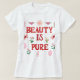 Un design gracieux de T-shirts avec l'expression "La beauté est pure" en typographie élégante et fluide, accentuée d'éléments naturels doux comme des feuilles, des fleurs ou des gouttelettes d'eau. Le design intègre simplicité et sophistication, symbolisant l'idée que la vraie beauté vient de l'authenticité et de la paix intérieure. Parfait pour ceux qui fêtent l'élégance naturelle et la positivité.
