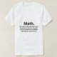 Typographie des maths Funny Math T-Shirt conçu par Nisha Prabhu. Ajoutez une touche d'élégance mathématique à votre garde-robe grâce à ce T-shirt élégant de typographie mathématique ! Avec sa typographie accrocheuse, c'est le tee-shirt parfait pour tous ceux qui aiment les nombres et la géométrie. Que vous soyez un expert en mathématiques ou que vous vouliez simplement montrer votre amour pour les chiffres, cette chemise est sûre de tourner la tête. Faites une déclaration et démarrez avec style avec ce design unique inspiré des mathématiques. Commandez aujourd'hui !