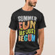 phrase ludique Summer Fun Has Just Begun en lettres colorées et audacieuses, parfait pour mettre l'ambiance pour une saison amusante à venir.