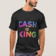 Ce t-shirt accrocheur présente l'expression audacieuse "Cash is King" dans une palette éclatante et multicolore. Le design ludique et énergique est parfait pour toute personne qui apprécie une touche d'humour et une pièce de déclaration.