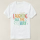 Le design des t-shirts présente le texte "Laughing All the Way" dans un schéma coloré amusant et vibrant. Chaque mot pourrait être une couleur joyeuse différente, reflétant le message léger et positif. Ce design est parfait pour quelqu'un qui aime le voyage de la vie et trouve l'humour sur le chemin.