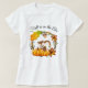 Un t-shirt avec un design typographique qui dit que Fall est dans l'air. Illustré par un adorable écureuil debout derrière quelques citrouilles orange aquarelle. Une couronne feuillue les entoure d'une feuille de chêne, d'un cordon, de fleurs d'orange d'automne et d'autres sprigs et feuilles.