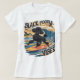 Un caniche noir surplombant une vague massive et surplombant une île tropicale, mettant en valeur ses impressionnantes compétences de surf.