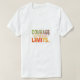 Le t-shirt est décoré d'un texte multicolore et audacieux qui dit : "Le courage défie les limites". Chaque mot est une couleur vibrante différente, créant une déclaration dynamique et motivante. Le design évite toute image des gens, en gardant l'accent entièrement sur le message d'autonomisation.