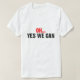 "OH... OUI NOUS POUVONS" Écrit sur le devant et "OH... NON NOUS NE POUVONS PAS" écrit au dos. Bien sûr de les garder à deviner sur les isoloirs. Un commentaire satirique sur la démocratie et les élections américaines de 2008 inspiré par la tradition britannique de Pantomime et Punch et Judy. Écrit dans une police de gros titres de journal en détresse.