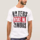 Les haineux me rendent célèbre. C'est exact ; les haineux me rendent célèbre. Est-elle entendue parler "une mauvaise presse la bonne presse" ? Bien, c'est fondamentalement le même concept. Il y a une série de produits qui s'étendent des T-shirts, chemises dans les tasses et plus qui emploient cette conception. C'est un grand cadeau pour n'importe qui près d'atteindre ce but, pour devenir célèbre avec l'aide des haineux. Après tout, les haineux me rendent célèbre. Cette conception vient en rouge et bleu.