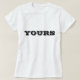 Chemise T classique de base en blanc imprimé avec YOURS en texte noir typographie lettrage et design graphique numérique par TheFabricSeal impression sur demande shop à Zazzle.com #ZazzleMade https://www.zazzle.com/store/thefabricseal TheFabricSeal ©️ Original. Cliquez sur le bouton "Customiser" pour en faire votre propre produit personnalisé ou monogrammé. Personnalisez facilement ce produit en ajoutant des noms, des initiales, du monogramme, des phrases, du texte, de la photo, du logo, de la couleur, des illustrations pour un design unique et chic. Vous pouvez modifier la couleur du texte et le style de police à l'aide de l'option customiser. Ces élégants t-shirts et casquettes de casquette de baseball de style camionneur présentent un design simple, élégant et moderne avec des textes personnalisés de couleur blanche et tendance lettrant la typographie qui ajoute une touche élégante. Les détails imprimés brodés et personnalisés lui confèrent une finition de haute qualité, ce qui en fait une combinaison de choix de défilés de mode mignons, amusants, drôles, élégants, excellents et sportifs pour de nombreuses occasions spéciales. Vous pouvez également transférer la conception à d'autres produits de votre choix. Concevez les vôtres. Personnalisez-le à votre gout . Grand cadeau pour la famille, les amis et pour vous-même bien sûr. Profitez de votre expérience d'achat. Commandez aujourd'hui . Merci.