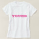 Chemise T classique de base en blanc imprimé avec YOURS en rose chaud typographie lettrage et design graphique numérique par TheFabricSeal impression sur demande shop à Zazzle.com #ZazzleMade https://www.zazzle.com/store/thefabricseal TheFabricSeal ©️ Original. Cliquez sur le bouton "Customiser" pour en faire votre propre produit personnalisé ou monogrammé. Personnalisez facilement ce produit en ajoutant des noms, des initiales, du monogramme, des phrases, du texte, de la photo, du logo, de la couleur, des illustrations pour un design unique et chic. Vous pouvez modifier la couleur du texte et le style de police à l'aide de l'option customiser. Ces élégants t-shirts et casquettes de casquette de baseball de style camionneur présentent un design simple, élégant et moderne avec des textes personnalisés de couleur blanche et tendance lettrant la typographie qui ajoute une touche élégante. Les détails imprimés brodés et personnalisés lui confèrent une finition de haute qualité, ce qui en fait une combinaison de choix de défilés de mode mignons, amusants, drôles, élégants, excellents et sportifs pour de nombreuses occasions spéciales. Vous pouvez également transférer la conception à d'autres produits de votre choix. Concevez les vôtres. Personnalisez-le à votre gout . Grand cadeau pour la famille, les amis et pour vous-même bien sûr. Profitez de votre expérience d'achat. Commandez aujourd'hui . Merci.