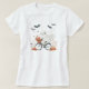 "Embrace the spooky yet sweet side of Halloween with our 'Ghost on a Bike' T-shirt ! This adorable design showcases a friendly ghost riding a bicycle, surrounded by playful bats and a basket full of flowers. Perfect for anyone who loves Halloween with a whimsical twist, this shirt adds a lighthearted and fun touch to the spooky season. Whether you're heading to a fall festival or just enjoying the crisp autumn air, this T-shirt is sure to spread halloween cheer wherever you go!"
