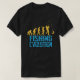 Illustration humoristique de l'évolution de l'homme d'un cavalier à un pêcheur moderne. Le caveman tient un bâton avec un rocher pointu à la fin, l'homme ancien utilise une lance, l'homme médiéval utilise un arc et une flèche, et l'homme moderne utilise une canne à pêche. Le design est parfait pour les amateurs de pêche, ou ceux qui apprécient le rire.