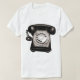 Un t-shirt avec un grand motif téléphonique en noir et blanc chaud.