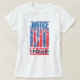 Ce graphique patriotique de la Ligue de la Justice est peint en bleu et en rouge, les membres de la Ligue ont posé en alternance des bandes de couleurs entre le logo du film de la Ligue de la Justice.