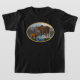Une mama orignal et son mignon veau avec un lac et des montagnes au loin. Le texte "Alaska" dans une police enneigée apparaît également.