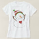 Un bonhomme de neige avec un coeur d'amour sur la poitrine. Ce design semble vraiment efficace sur ce T-shirt féminin
