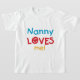 Nanny Loves Me T-shirts, cartes, autocollants, sacs de costumes, et plus avec coloré rouge, jaune, et bleu texte et conception du coeur. Ces vêtements et cadeaux Nanny Love me feront sourire !