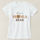 Un t-shirt Mama Bear pour une mère avec le nom customisé de son enfant. Ce t-shirt est blanc et marron avec le mot "Mama" incluant une illustration du visage d'ours comme deuxième lettre du mot. Ce t-shirt peut être porté facilement n'importe quel jour et il fait également partie d'une collection de fête d'anniversaire d'ours. Il fait double devoir. Il est aussi facile de customiser. Il suffit d’ajouter le nom de votre enfant, d’ajouter ce t-shirt à votre panier, puis de faire savoir à tout le monde qui est l’ours de maman que vous êtes! Mama Ours Nom de l'enfant Mère T-shirt Conception de jour férié | ©Melissa Patton - Artiste/Illustrateur
