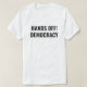 Frappez les rues avec ce "HANDS OFF! DEMOCRACY" protestation tee blanc (texte noir) attirance attention. Prêt à personnaliser et à customiser si vous le souhaitez. Disponible dans d'autres couleurs et styles.