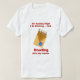 Cette chemise comique de lanceur de bière montre des bouteilles à bière remplaçant des goupilles de bowling. Une boule expédiante est sur le point de faire une grève. La légende indique : "Mardi soir je vais boire… le bowling d'Uhh avec mes amis."