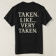 Montrez votre statut de futur marié avec confiance et humour ! Ce T-shirt audacieux et élégant présente la phrase ludique « Pris. Genre… TRÈS Pris. » au dos — parfait pour les mariages, les enterrements de vie de garçon, les événements de fiançailles ou les aventures de lune de miel.