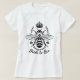 Ce t-shirt de mariage simple et élégant dit "Mariée à Abeille" et présente une silhouette d'abeille entourée d'une couronne, d'une fleur de lis et d'une couronne de laurier. Vous pouvez également modifier le texte "Mariée à abeille" pour une autre occasion ou customiser plus loin pour ajouter du texte. Pour voir ce design en tout blanc pour t-shirts de couleur foncée, visitez ici : https://www.zazzle.com/bride_to_bee_honeybee_crown_wedding_personalized_t_shirt-235745448229502460