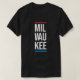 High-contrast stacked MILWAUKEE typography with red top bar and blue accent, ideal for urban pride apparel and tees.