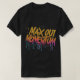 Image centrale : Une forme dynamique et abstraite, peut-être une flèche stylisée ou un vortex, représentant l'élan et l'énergie. Il pourrait s'agir d'un dégradé de couleurs, à commencer par un bleu vif à la base et à passer à un rouge vif à la pointe. Texte : "Max Out Momentum" en gras, police sans-serif, positionné en haut ou en bas de la forme. Le texte peut être légèrement incliné ou incurvé pour correspondre à l'aspect dynamique de la conception. Éléments supplémentaires : Envisagez d'ajouter un motif subtil ou une texture à l'arrière - plan pour accroître l'intérêt visuel. Un slogan ou un slogan lié à l'élan ou à l'énergie pourrait être inclus sur le dos de la chemise. Aspect général : Le design doit être moderne, énergique et attrayant pour les yeux. Le jeu de couleurs et la typographie devraient compléter l'image centrale et transmettre un sentiment de vitesse et de puissance.