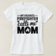 Ce t-shirt blanc présente le texte "- MON FAVORITE -" en haut dans une petite police noire, au-dessus du mot "FIREFIGHTER" dans une police noire plus grande et en gras. Ci-dessous, "call me" est écrit dans une police de caractères rouge, et en bas, "MOM" est affiché dans une grande police rouge gras avec une conception de flamme subtile incorporée dans le "O". Les petits coeurs rouges mettent l'accent sur le mot "appels". Cette chemise est fière d'avoir un pompier comme enfant.