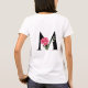 T-shirt Monogramme Lettre initiale M en noir avec rose ros