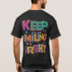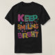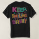 design coloré avec l'expression "Keep Smiling Bright" dans un motif géométrique, avec chaque lettre dans une teinte vibrante différente.