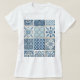 T-shirt Mosaïque Carrelage bleu—coton blanc de qualité supérieure avec imprimé en céramique d'inspiration géométrique et florale. Confortable, lavable à la machine, prêt à porter.