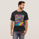 A purple-blue raptor glides across a yellow deck, surrounded by electric, paint-swirl color fields. High-energy psychedelia meets modern street-art flair for a striking centerpiece.
