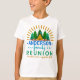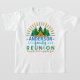 Cette conception unique et drôle de T-shirt de réunion de famille est parfaite pour votre rassemblement annuel de famille. Le texte indique, "[la Réunion de famille de votre nom] | apportent la couvée, apprécient la nourriture." Il a un motif de rayon du soleil dans l'orange au-dessus d'une scène qui inclut des pins, une tente et quatre chiffres de bâton jetant un coup d'oeil par derrière la tente ou les hot-dogs de torréfaction au-dessus d'un feu.