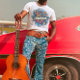 Explosion florale tropicale célébrant la biodiversité calédonienne dans un style tattoo moderne. Les hibiscus et fleurs exotiques aux couleurs vibrantes orange et turquoise s'entrelacent autour du bandeau vintage. L'illustration rayonnante évoque le paradis insulaire du Pacifique avec une élégance bohème chic et une touche artistique contemporaine.
