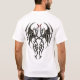 An elegant and symmetrical tribal crest featuring twin bat wings with a detailed, leathery obsidian texture. The design is centered around an intricate, interwoven totem composed of sharp, curved linework. At the very top, two subtle crimson accents provide a striking pop of color against the dark, weathered stone and metal finish.