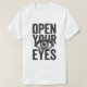 A powerful and thought-provoking design from the GlitchEra collection! This graphic uses bold grunge typography and a detailed eye illustration to demand awareness: 'OPEN YOUR EYES.' It's the ideal shirt for anyone interested in existential concepts, dark humor, and making an anti-social statement about the world. Embrace awareness and challenge the system crash.