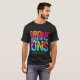 Le t-shirt "Arrange Rides" présente l'expression en caractères gras et multicolores, disposés de manière ludique et dynamique. Les couleurs sont vives et attrayantes, ce qui fait que le design se démarque. Le style général est moderne et énergique, parfait pour une société en partage d'équitation ou toute personne qui aime voyager.