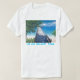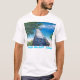 Le T-shirt avec une scène tropicale d'un dock de bateau a placé dans les Caraïbe ou les clés de la Floride. Les eaux bleues et le ciel avec une navigation de plage et de voilier sur l'océan ont porté par un vent fort de mer.