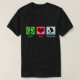 Un tee-shirt noir avec un coeur, un signe de paix et un windsurf.